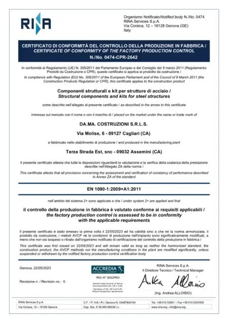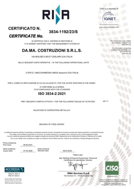 La Da.Ma. Costruzioni è in possesso delle qualifiche UNI EN 1090-2 (EXC3) & UNI EN ISO3834-2